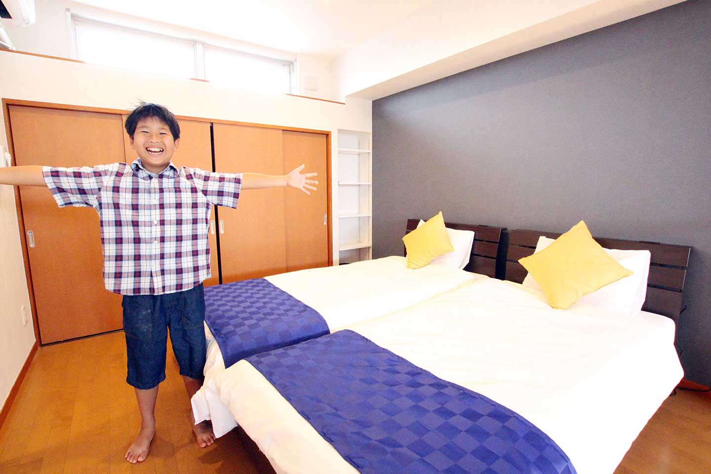 ファミリースイートは6名様まで、ロフトルームは1階のエキストラベッド含めて4名様まで、ワンルームは布団をご用意しておりますので、3名様まで宿泊できます!