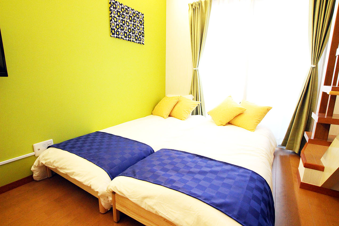 ワンルームは、6畳+のスペースです。シングルベッド2台と布団の追加で最大3名様まで宿泊できます。